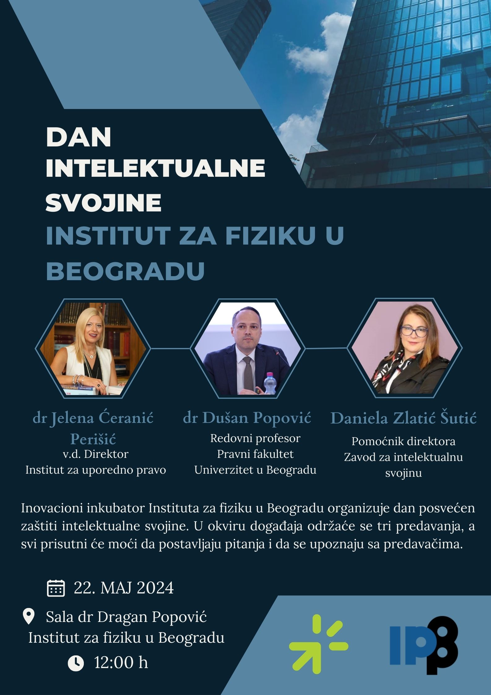 Једнодневни скуп под називом Дан интелектуалне својине биће одржан 22. маја 2024. године у просторијама Института за физику у Београду.