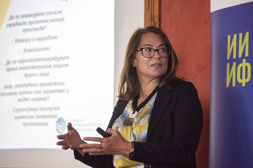 Треће предавање под називом „Заштита иновација патентима“, држала је Даниела Златић Шутић, помоћница директора Завода за интелектуалну својину. Истраживачима Института и гостима дала је важне практичне савете који ће им помоћи у тражењу патената и говорила је о условима за заштиту проналаска и шта се може заштити патентом. Присутни су посебно били заинтересовани за разлике између патента и малог патента о чему је Златић Шутић детаљно говорила. „Када поднесете захтев за патент, национални заводи испитују да ли је производ нов, инвентиван и погодан за индустријску примену“, нагласила је Даниела Златић Шутић.